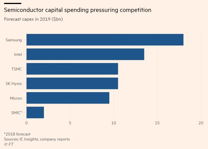 目前全球最大的合约芯片制造商是台积电,他们拥有超过一半的合约芯片制造市场。在上周四的财报会议,他们表示,来年将把收入的8%至9%(2018年的支出约为29亿美元)投入到相关的技术研发中去。 在高端智能手机需求突然下降的情况下,他们正在努力走出泥潭。