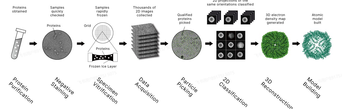 冷冻电镜单颗粒分析工作流程示意图