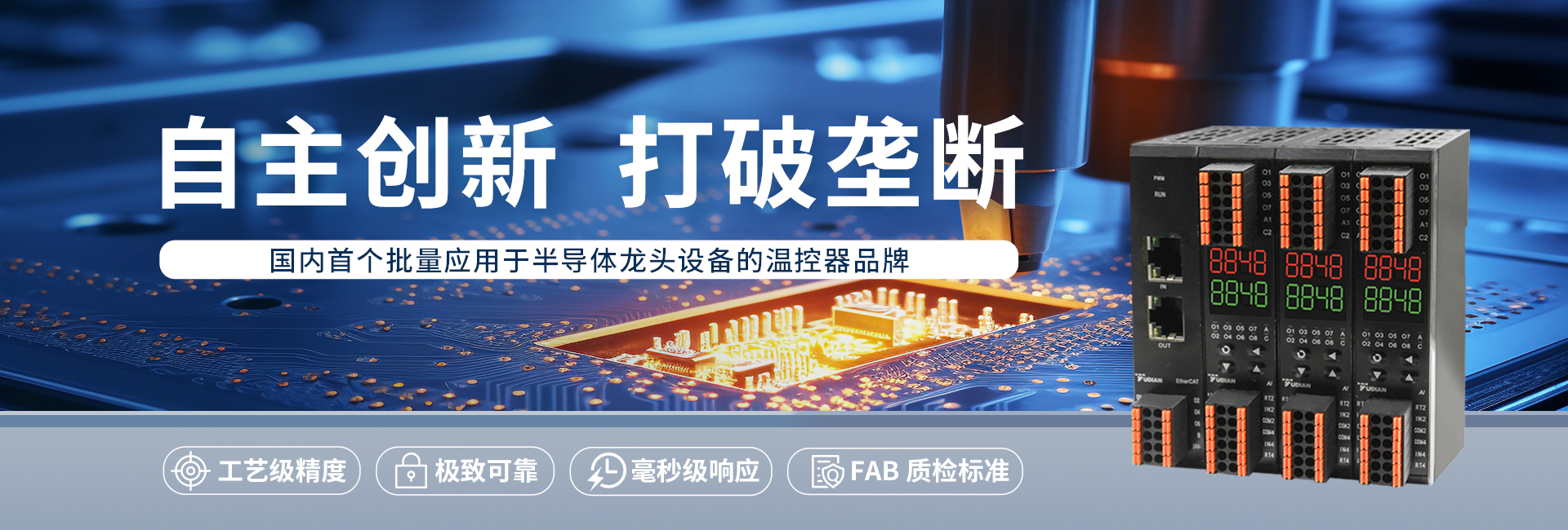 作为一家专注温控技术35年的国家高新技术企业,宇电温控科技始终将技术创新作为企业发展的核心动力 。公司以”不断努力,追求完美”为发展理念,持续深耕温控技术领域,形成了从PID算法研发到硬件设计制造的完整技术体系。在半导体、光伏、锂电池、生物医药和高端材料等多个新兴行业,宇电温控器以其高精度、高稳定性和高可靠性,成功打破了国外品牌的技术垄断,系统性地完成进口替代,填补了国内高端温控仪表在核心设备领域应用的空白 。